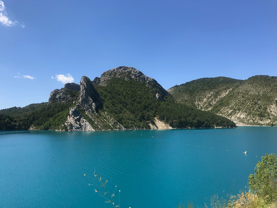 Het meer van Sainte-Croix is een stuwmeer waarin de rivier de Verdon uitmondt. Het meer is het op een na grootste stuwmeer van Frankrijk bestaat sinds 1973. Het dorp Les Salles-sur-Verdon stond vroeger op de plaats waar nu het meer ligt. Het oude dorp werd 400 meter verder herbouwd. Het meer is gericht op toeristen. Vlak bij de toegang tot de Gorges worden kano’s, kajakken, waterfietsen en motorbootjes verhuurd aan mensen die de kloof willen bezoeken.